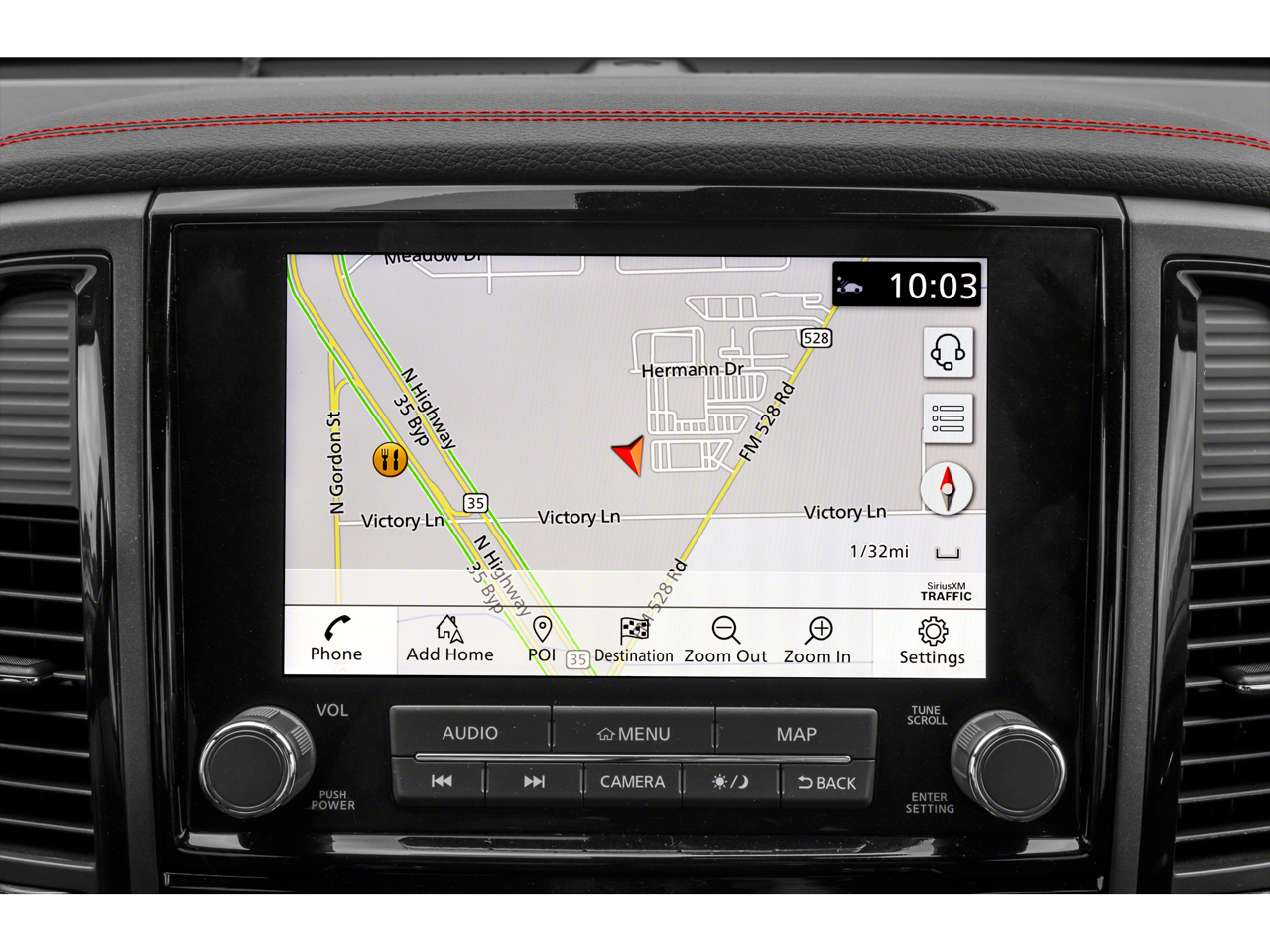 • Radio: NissanConnect w/Navigation -inc: 9" touchscreen display, 6 speakers, wireless Apple CarPlay, Android Auto, SiriusXM radio, Nissan door to door navigation w/3D building graphics and satellite imagery, connected navigation features including online POI search, over-the-air map updates and online premium traffic information, SiriusXM Traffic, SiriusXM Travel Link w/weather, fuel prices, movie listings, stock info, sports and parking, TomTom weather, Wi-Fi hotspot, follow me home function, 2 illuminated USB connections (1 type A, 1 type C), 2 USB-A charge only ports, Bluetooth® hands-free phone system, streaming audio via Bluetooth® and hands-free text messaging assistant