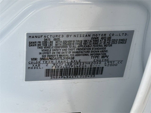 17 Alloy Wheels, 19 Alloy Wheels, 2-Tone Premium Paint, 4-Wheel Disc Brakes, 6 Speakers, ABS brakes, Air Conditioning, Alloy wheels, AM/FM radio, Auto High-beam Headlights, Automatic temperature control, Brake assist, Bumpers: body-color, Carpeted Floor Mats & Underfloor Protector, Crossbars, Delay-off headlights, Driver door bin, Driver vanity mirror, Dual front impact airbags, Dual front side impact airbags, Electronic Stability Control, Emergency communication system: NissanConnect Services, Exterior Parking Camera Rear, Front anti-roll bar, Front Bucket Seats, Front Center Armrest, Front reading lights, Front wheel independent suspension, Fully automatic headlights, Garage door transmitter: myQ Connected Garage, Illuminated entry, Knee airbag, Leather Shift Knob, Leather steering wheel, Low tire pressure warning, NissanConnect featuring Apple CarPlay and Android Auto, Occupant sensing airbag, Outside temperature display, Overhead airbag, Overhead console, Panic alarm, Passenger door bin, Passenger vanity mirror, Power door mirrors, Power steering, Power windows, Radio data system, Radio: AM/FM/SiriusXM Audio System, Rear anti-roll bar, Rear reading lights, Rear seat center armrest, Rear side impact airbag, Rear window defroster, Rear window wiper, Remote keyless entry, Security system, Speed control, Speed-sensing steering, Splash Guards, Split folding rear seat, Spoiler, Sport Leatherette w/Cloth Insert Seat Trim, Sport steering wheel, Steering wheel mounted audio controls, Tachometer, Telescoping steering wheel, Tilt steering wheel, Traction control, Trip computer, Turn signal indicator mirrors, Variably intermittent wipers. 17 Alloy Wheels, 19 Alloy Wheels, 2-Tone Premium Paint, 4-Wheel Disc Brakes, 6 Speakers, ABS brakes, Air Conditioning, Alloy wheels, AM/FM radio, Auto High-beam Headlights, Automatic temperature control, Brake assist, Bumpers: body-color, Carpeted Floor Mats & Underfloor Protector, Crossbars, Delay-off headlights, Driver door bin, Driver vanity mirror, Dual front impact airbags, Dual front side impact airbags, Electronic Stability Control, Emergency communication system: NissanConnect Services, Exterior Parking Camera Rear, Front anti-roll bar, Front Bucket Seats, Front Center Armrest, Front reading lights, Front wheel independent suspension, Fully automatic headlights, Garage door transmitter: myQ Connected Garage, Illuminated entry, Knee airbag, Leather Shift Knob, Leather steering wheel, Low tire pressure warning, NissanConnect featuring Apple CarPlay and Android Auto, Occupant sensing airbag, Outside temperature display, Overhead airbag, Overhead console, Panic alarm, Passenger door bin, Passenger vanity mirror, Power door mirrors, Power steering, Power windows, Radio data system, Radio: AM/FM/SiriusXM Audio System, Rear anti-roll bar, Rear reading lights, Rear seat center armrest, Rear side impact airbag, Rear window defroster, Rear window wiper, Remote keyless entry, Security system, Speed control, Speed-sensing steering, Splash Guards, Split folding rear seat, Spoiler, Sport Leatherette w/Cloth Insert Seat Trim, Sport steering wheel, Steering wheel mounted audio controls, Tachometer, Telescoping steering wheel, Tilt steering wheel, Traction control, Trip computer, Turn signal indicator mirrors, and Variably intermittent wipers.