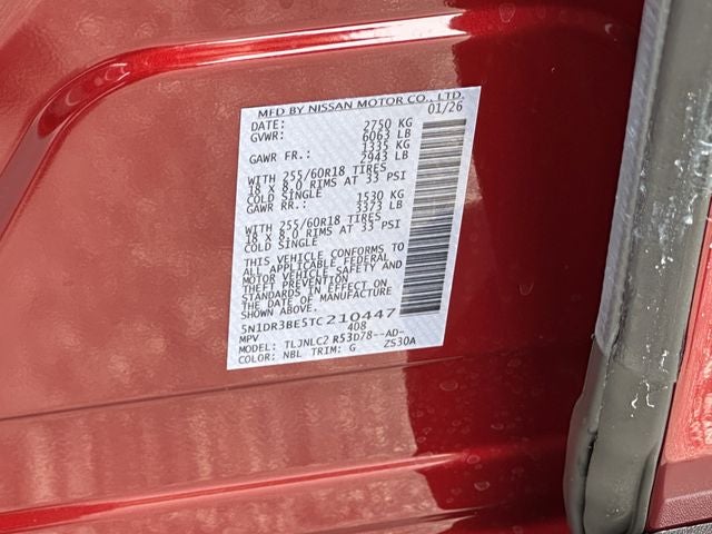 Scarlet 2026 Nissan Pathfinder SV 4WD 9-Speed Automatic 3.5L V6 DOHC