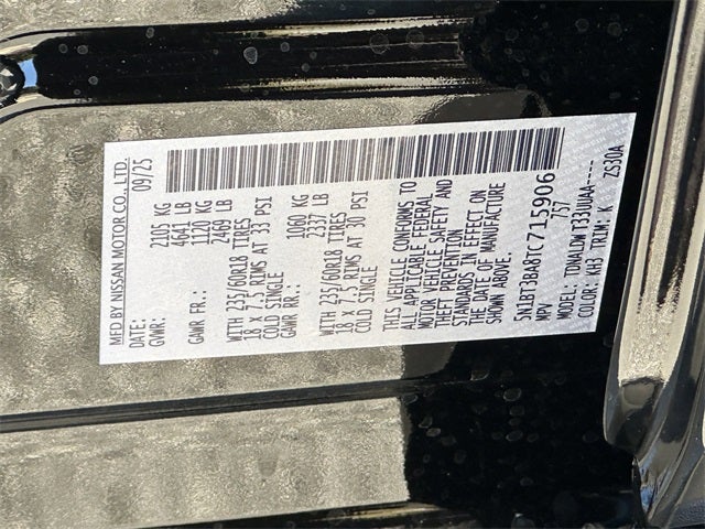 4-Wheel Disc Brakes, 6 Speakers, ABS brakes, Air Conditioning, Alloy wheels, AM/FM radio: Sirius, Apple CarPlay/Android Auto, Auto High-beam Headlights, Automatic temperature control, Black Splash Guards (Set of 4) (B92), Brake assist, Bumpers: body-color, Chrome Rear Bumper Protector, Cold Weather Package, Delay-off headlights, Driver door bin, Driver vanity mirror, Dual front impact airbags, Dual front side impact airbags, Electronic Stability Control, Emergency communication system: NissanConnect Services, First Aid Kit, Floor Mats w/1-Piece Cargo Area Protector, Four wheel independent suspension, Front anti-roll bar, Front Bucket Seats, Front Center Armrest, Front dual zone A/C, Front reading lights, Fully automatic headlights, Heated door mirrors, Heated Steering Wheel, Illuminated entry, Knee airbag, Leatherette Door Trim Inserts w/Stitch, Low tire pressure warning, Occupant sensing airbag, Outside temperature display, Overhead airbag, Overhead console, Panic alarm, Panoramic Moonroof, Passenger door bin, Passenger vanity mirror, Power door mirrors, Power driver seat, Power Liftgate, Power steering, Power windows, Prima-Tex Leatherette Seat Trim, Radio data system, Radio: AM/FM NissanConnect, Rear anti-roll bar, Rear Door Sunshades, Rear Personal Lights, Rear seat center armrest, Rear side impact airbag, Rear window defroster, Rear window wiper, Remote keyless entry, Silver Painted Roof Rails, Speed control, Speed-sensing steering, Speed-Sensitive Wipers, Split folding rear seat, Spoiler, Steering wheel mounted audio controls, SV Premium Package, Tachometer, Telescoping steering wheel, Tilt steering wheel, Traction control, Trip computer, Variably intermittent wipers. Cold Weather Package (Heated Steering Wheel), SV Premium Package (Leatherette Door Trim Inserts w/Stitch, Panoramic Moonroof, Prima-Tex Leatherette Seat Trim, Rear Door Sunshades, Rear Personal Lights, and Silver Painted Roof Rails), 4-Wheel Disc Brakes, 6 Speakers, ABS brakes, Air Conditioning, Alloy wheels, AM/FM radio: Sirius, Apple CarPlay/Android Auto, Auto High-beam Headlights, Automatic temperature control, Black Splash Guards (Set of 4) (B92), Brake assist, Bumpers: body-color, Chrome Rear Bumper Protector, Delay-off headlights, Driver door bin, Driver vanity mirror, Dual front impact airbags, Dual front side impact airbags, Electronic Stability Control, Emergency communication system: NissanConnect Services, First Aid Kit, Floor Mats w/1-Piece Cargo Area Protector, Four wheel independent suspension, Front anti-roll bar, Front Bucket Seats, Front Center Armrest, Front dual zone A/C, Front reading lights, Fully automatic headlights, Heated door mirrors, Illuminated entry, Knee airbag, Low tire pressure warning, Occupant sensing airbag, Outside temperature display, Overhead airbag, Overhead console, Panic alarm, Passenger door bin, Passenger vanity mirror, Power door mirrors, Power driver seat, Power Liftgate, Power steering, Power windows, Radio data system, Radio: AM/FM NissanConnect, Rear anti-roll bar, Rear seat center armrest, Rear side impact airbag, Rear window defroster, Rear window wiper, Remote keyless entry, Speed control, Speed-sensing steering, Speed-Sensitive Wipers, Split folding rear seat, Spoiler, Steering wheel mounted audio controls, Tachometer, Telescoping steering wheel, Tilt steering wheel, Traction control, Trip computer, and Variably intermittent wipers.