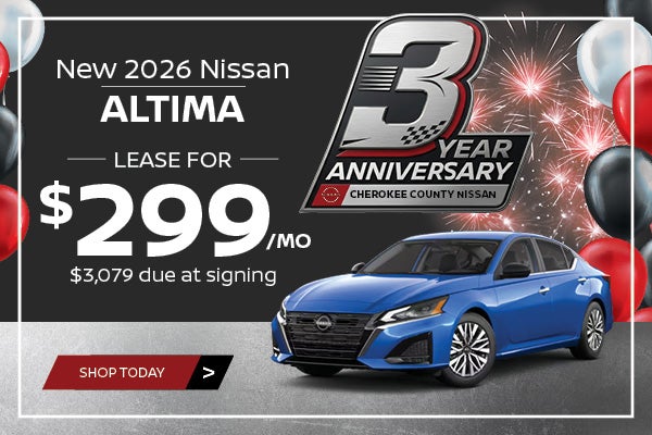 VIN: 1N4BL4CV5TN323472. Well-qualified lessees lease a new 2026 Altima SR FWD. with Splash Guards (4-piece set) and Carpeted Floor Mats (4-piece set), Carpeted Trunk Area Protector, Hideaway Trunk Cargo Net, and Shopping Bag Hooks in dealer stock for $299 per month for 39 months. Initial payment excludes taxes, title, and license (TTL). $3,079 due at lease signing (includes: $2,780 down payment, $299 first month payment). Offer valid only when financed through NMAC. Subject to residency restrictions.MSRP: $33,090. Sale Price: $30,712. Net capitalized cost of $26,895 includes a $695 non-refundable acquisition fee. Dealer contribution may affect actual price set by dealer. Monthly payments total $11,661 at lease end, purchase for $19,162, plus purchase option fee up to $300 (except KS & WI), plus tax, or pay excess wear & use plus $0.25 per mile for mileage over 10,000 miles per year. Disposition fee due at lease end. No security deposit required. Must take delivery from new dealer stock. Contact participating dealer for details. Lease Offer Ends 05/04/2026. The NMAC SignatureFLEX Lease Program is available on any Nissan model year 2020 or newer from new dealer stock leased through Nissan Motor Acceptance Company (NMAC) with an original or adjusted lease maturity date of 2/1/2025 or later. After lease signing, Program Lessee can purchase additional mileage at $0.10 per mile through the NMAC customer portal or mobile app up to 30 days before Program Lessee’s lease maturity date provided Program Lessee’s account is current and in good financial standing as solely determined by NMAC. Purchase of additional mileage is subject to sales tax. No refund or credit on unused miles. At lease end, pay excess wear & use plus $0.15 per mile (for mileage over the original lease agreement of 15,000 miles per year or 12,000 miles per year) or $0.25 per mile (for mileage over the original lease agreement of 10,000 miles per year or 5,000 miles per year). Contact participating dealer for details. Offer is subject to change at any time and/or is subject to termination without notice.