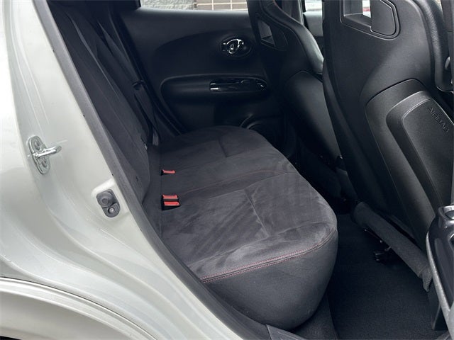 White Pearl 2016 Nissan Juke NISMO RS AWD CVT with Xtronic I4 **ALLOY WHEELS, Juke NISMO RS, 4D Sport Utility, I4, CVT with Xtronic, AWD, White Pearl, Smoked Gray Artificial Leather, Front Bucket Seats, Navigation System, Power door mirrors, Recaro Front Bucket Seats, Simulated Suede/Leather Seat Trim, Split folding rear seat, Spoiler, Turn signal indicator mirrors, Wheels: 18 NISMO, 4-Wheel Disc Brakes, 7 Speakers, ABS brakes, Activation Disclaimer, Air Conditioning, AM/FM radio: SiriusXM, Automatic temperature control, Axle Ratio: 5.798, Brake assist, Bumpers: body-color, CD player, Driver door bin, Driver vanity mirror, Dual front impact airbags, Dual front side impact airbags, Electronic Stability Control, Four wheel independent suspension, Front anti-roll bar, Front reading lights, Illuminated entry, Leather Shift Knob, Low tire pressure warning, NISMO Carpeted Floor Mats & Cargo Mat, Occupant sensing airbag, Outside temperature display, Overhead airbag, Panic alarm, Passenger door bin, Passenger vanity mirror, Power steering, Power windows, Radio data system, Radio: NissanConnect w/Navigation & Mobile Apps, Rear anti-roll bar, Rear window defroster, Rear window wiper, Remote keyless entry, Security system, Special Paint - White Pearl, Speed control, Speed-sensing steering, Steering wheel mounted audio controls, Tachometer, Tilt steering wheel, Traction control, Trip computer, Variably intermittent wipers, Juke NISMO RS, 4D Sport Utility, I4, CVT with Xtronic, AWD, White Pearl, Smoked Gray Artificial Leather, Front Bucket Seats, Navigation System, Power door mirrors, Recaro Front Bucket Seats, Simulated Suede/Leather Seat Trim, Split folding rear seat, Spoiler, Turn signal indicator mirrors, Wheels: 18 NISMO.