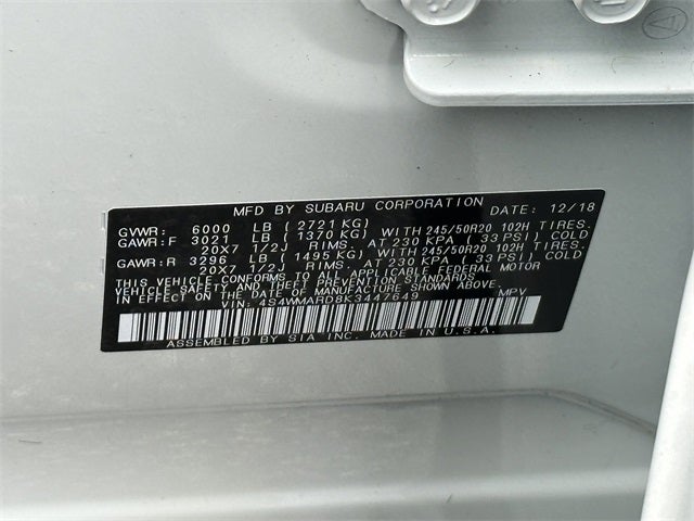 Crystal White Pearl 2019 Subaru Ascent Touring AWD Lineartronic CVT 2.4L DOHC Ascent Touring, 4D Sport Utility, 2.4L DOHC, Lineartronic CVT, AWD, Crystal White Pearl, Java Leather, 20 Alloy Wheels, 3rd row seats: bench, All-Weather Floor Liners, Auto High-beam Headlights, Auto-Dimming Exterior Mirror w/Approach Light, Cargo Tray, Exterior Parking Camera Rear, Front Bucket Seats, Garage door transmitter: HomeLink, Heated & Ventilated Front Bucket Seats, Heated door mirrors, Heated front seats, Heated rear seats, Heated steering wheel, Map & Reading Lights LED Upgrade - 6 Bulb Kit, Memory seat, Navigation System, Perforated Leather-Trimmed Upholstery, Popular Package #2A, Power door mirrors, Power Liftgate, Power moonroof, Power passenger seat, Rear Bumper Cover, Remote keyless entry, Splash Guards, Split folding rear seat, Standard Model, Telescoping steering wheel, Tilt steering wheel, Turn signal indicator mirrors, Ventilated front seats, 14 Speakers, 4-Wheel Disc Brakes, ABS brakes, Air Conditioning, Alloy wheels, AM/FM radio: SiriusXM, Auto-dimming Rear-View mirror, Automatic temperature control, Axle Ratio: 4.44, Brake assist, Bumpers: body-color, CD player, Compass, Delay-off headlights, Driver door bin, Driver vanity mirror, Dual front impact airbags, Dual front side impact airbags, Electronic Stability Control, Emergency communication system: STARLINK Safety and Security, Four wheel independent suspension, Front anti-roll bar, Front Center Armrest, Front dual zone A/C, Front fog lights, Front reading lights, Fully automatic headlights, harman/kardon® Speakers, Illuminated entry, Knee airbag, Low tire pressure warning, Occupant sensing airbag, Outside temperature display, Overhead airbag, Overhead console, Panic alarm, Passenger door bin, Passenger vanity mirror, Power driver seat, Power steering, Power windows, Radio data system, Radio: Subaru STARLINK 8.0 Multimedia Nav System, Rain sensing wipers, Rear air conditioning, Rear anti-roll bar, Rear reading lights, Rear Seatback Protector, Rear window defroster, Rear window wiper, Roof rack: rails only, Security system, Speed control, Spoiler, STARLINK/Apple CarPlay/Android Auto, Steering wheel mounted audio controls, Tachometer, Traction control, Trip computer, Variably intermittent wipers, Ascent Touring, 4D Sport Utility, 2.4L DOHC, Lineartronic CVT, AWD, Crystal White Pearl, Java Leather, 20 Alloy Wheels, 3rd row seats: bench, All-Weather Floor Liners, Auto High-beam Headlights, Auto-Dimming Exterior Mirror w/Approach Light, Cargo Tray, Exterior Parking Camera Rear, Front Bucket Seats, Garage door transmitter: HomeLink, Heated & Ventilated Front Bucket Seats, Heated door mirrors, Heated front seats, Heated rear seats, Heated steering wheel, Map & Reading Lights LED Upgrade - 6 Bulb Kit, Memory seat, Navigation System, Perforated Leather-Trimmed Upholstery, Popular Package #2A, Power door mirrors, Power Liftgate, Power moonroof, Power passenger seat, Rear Bumper Cover, Remote keyless entry, Splash Guards, Split folding rear seat, Standard Model, Telescoping steering wheel, Tilt steering wheel, Turn signal indicator mirrors, Ventilated front seats.