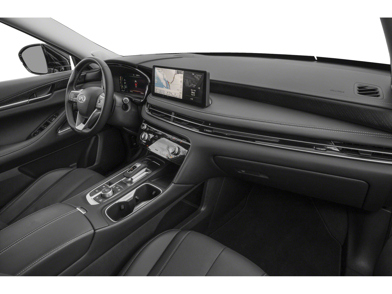 Majestic White 2023 INFINITI QX60 Sensory AWD 9-Speed Automatic 3.5L V6 10.8 Head-Up Display, 17 Speakers, 3rd row seats: bench, 4-Wheel Disc Brakes, 4.334 Axle Ratio, ABS brakes, Adaptive Front Lighting System, Air Conditioning, Alloy wheels, AM/FM radio: SiriusXM, Anti-whiplash front head restraints, Auto High-beam Headlights, Auto-dimming door mirrors, Auto-dimming Rear-View mirror, Automatic temperature control, Bose Performance Series 17-Speaker Sound System, Brake assist, Bumpers: body-color, Cargo Mat (Reversible), Cargo Package, Climate-Controlled Front Bucket Seats, Delay-off headlights, Driver door bin, Driver vanity mirror, Dual front impact airbags, Dual front side impact airbags, Electronic Stability Control, Emergency communication system, First Aid Kit, Floor Mats on Bench Seats w/3rd Row Tray, Four wheel independent suspension, Front anti-roll bar, Front Bucket Seats, Front Center Armrest, Front dual zone A/C, Front reading lights, Fully automatic headlights, Garage door transmitter: HomeLink, Heated door mirrors, Heated front seats, Heated rear seats, Heated steering wheel, Illuminated entry, Illuminated Kick Plate, Knee airbag, Leather Shift Knob, Leather steering wheel, Leather-Appointed Seating Surfaces, Literature Kit, Low tire pressure warning, Memory seat, Navigation system: INFINITI InTouch Navigation, Occupant sensing airbag, Outside temperature display, Overhead airbag, Overhead console, Panic alarm, Passenger door bin, Passenger vanity mirror, Power door mirrors, Power driver seat, Power Liftgate, Power moonroof, Power passenger seat, Power steering, Power windows, Radio data system, Radio: AM/FM Audio System, Rain sensing wipers, Rear air conditioning, Rear anti-roll bar, Rear reading lights, Rear seat center armrest, Rear side impact airbag, Rear window defroster, Rear window wiper, Reclining 3rd row seat, Remote keyless entry, Security system, Silver Cross Bar, Smart Rear View Mirror, Speed control, Speed-sensing steering, Speed-Sensitive Wipers, Splash Guards, Split folding rear seat, Spoiler, Steering wheel memory, Steering wheel mounted audio controls, Tachometer, Telescoping steering wheel, Tilt steering wheel, Traction control, Trip computer, Turn signal indicator mirrors, Variably intermittent wipers, Ventilated front seats, Vision Package, Wheels: 20 x 8J Luxury Machined Aluminum Alloy.