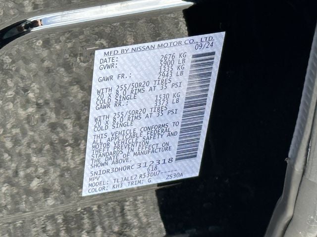 Super Black 2024 Nissan Pathfinder Platinum FWD 9-Speed Automatic 3.5L V6 DOHC **ONE OWNER**, **CARFAX CERTIFIED, ***NISSAN CERTIFIED PREOWNED (CPO), Pathfinder Platinum, Nissan Certified Certified, 4D Sport Utility, 3.5L V6 DOHC, 9-Speed Automatic, FWD, Super Black, Charcoal Leather, 2nd-Row Captain Chairs, 2nd-Row Rear Headrest, 3rd row seats: bench, Auto High-beam Headlights, Auto tilt-away steering wheel, Auto-dimming Rear-View mirror, Delay-off headlights, Exterior Parking Camera Rear, Front Bucket Seats, Fully automatic headlights, Garage door transmitter: HomeLink, Heads-Up Display, Heated & Cooled Front Bucket Seats, Heated door mirrors, Heated rear seats, Heated steering wheel, Illuminated entry, Memory seat, Navigation system: NissanConnect with Navigation and Services, NissanConnect featuring Apple CarPlay and Android Auto, Platinum Captain Chairs Package, Power door mirrors, Power driver seat, Power Liftgate, Power moonroof, Power passenger seat, Reclining 3rd row seat, Remote keyless entry, Security system, Semi-Aniline Leather-Appointed Seating Surfaces, Split folding rear seat, Turn signal indicator mirrors, Ventilated front seats, Wheels: 20 x 8J Machined Alloy, 13 Speakers, 4-Wheel Disc Brakes, ABS brakes, Air Conditioning, Alloy wheels, AM/FM radio: SiriusXM, Automatic temperature control, Axle Ratio: 4.334, Black Splash Guards (Set of 4), Bodyside moldings, Bose Premium Audio System, Brake assist, Bumpers: body-color, Cargo Net, Cargo Package, Cross Bars, Driver door bin, Driver vanity mirror, Dual front impact airbags, Dual front side impact airbags, Electronic Stability Control, Emergency communication system, First Aid Kit, Four wheel independent suspension, Front anti-roll bar, Front Center Armrest, Front dual zone A/C, Front reading lights, Heated front seats, Knee airbag, Leather steering wheel, Low tire pressure warning, Nissan USB Charging Cable Set, NissanConnect w/Navigation & Services, Occupant sensing airbag, Outside temperature display, Overhead airbag, Overhead console, Panic alarm, Passenger door bin, Passenger vanity mirror, Power steering, Power windows, Radio data system, Radio: AM/FM Audio System, Rain sensing wipers, Rear air conditioning, Rear anti-roll bar, Rear reading lights, Rear seat center armrest, Rear side impact airbag, Rear window defroster, Rear window wiper, Speed control, Speed-sensing steering, Speed-Sensitive Wipers, Spoiler, Steering wheel memory, Steering wheel mounted audio controls, Tachometer, Telescoping steering wheel, Tilt steering wheel, Traction control, Trip computer, Variably intermittent wipers, Pathfinder Platinum, 4D Sport Utility, 3.5L V6 DOHC, 9-Speed Automatic, FWD, Super Black, Charcoal Leather, 2nd-Row Captain Chairs, 2nd-Row Rear Headrest, 3rd row seats: bench, Auto High-beam Headlights, Auto tilt-away steering wheel, Auto-dimming Rear-View mirror, Delay-off headlights, Exterior Parking Camera Rear, Front Bucket Seats, Fully automatic headlights, Garage door transmitter: HomeLink, Heads-Up Display, Heated & Cooled Front Bucket Seats, Heated door mirrors, Heated rear seats, Heated steering wheel, Illuminated entry, Memory seat, Navigation system: NissanConnect with Navigation and Services, NissanConnect featuring Apple CarPlay and Android Auto, Platinum Captain Chairs Package, Power door mirrors, Power driver seat, Power Liftgate, Power moonroof, Power passenger seat, Reclining 3rd row seat, Remote keyless entry, Security system, Semi-Aniline Leather-Appointed Seating Surfaces, Split folding rear seat, Turn signal indicator mirrors, Ventilated front seats, Wheels: 20 x 8J Machined Alloy.