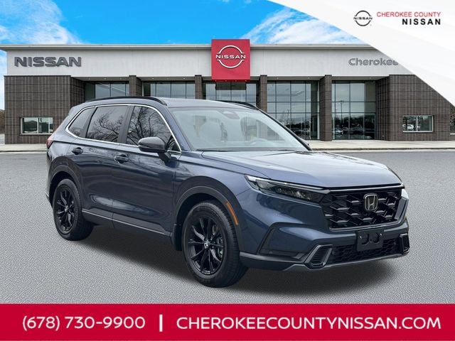 Blue 2025 Honda CR-V Hybrid Sport-L FWD eCVT 2.0L I4 DOHC 16V **ONE OWNER**, **CARFAX CERTIFIED, CR-V Hybrid Sport-L, 4D Sport Utility, 2.0L I4 DOHC 16V, eCVT, FWD, Blue, Leather, Auto High-beam Headlights, Auto-dimming Rear-View mirror, Blind Spot Information (BSI) System warning, Delay-off headlights, Exterior Parking Camera Rear, Fully automatic headlights, Heated door mirrors, Heated Front Bucket Seats, Leather Seat Trim, Memory seat, Power door mirrors, Power driver seat, Power Liftgate, Power moonroof, Power passenger seat, Security system, Split folding rear seat, Turn signal indicator mirrors, Wheels: 18 Berlina Black Alloy, 4-Wheel Disc Brakes, 8 Speakers, ABS brakes, Adaptive Cruise Control: Adaptive Cruise Control (ACC) with Low-Speed Follow, Air Conditioning, Alloy wheels, AM/FM radio: SiriusXM, Automatic temperature control, Brake assist, Bumpers: body-color, Compass, Driver door bin, Driver vanity mirror, Dual front impact airbags, Dual front side impact airbags, Electronic Stability Control, Four wheel independent suspension, Front anti-roll bar, Front Bucket Seats, Front Center Armrest, Front dual zone A/C, Front reading lights, Heated front seats, Illuminated entry, Knee airbag, Leather Shift Knob, Leather steering wheel, Low tire pressure warning, Occupant sensing airbag, Outside temperature display, Overhead airbag, Overhead console, Panic alarm, Passenger door bin, Passenger vanity mirror, Power steering, Power windows, Radio data system, Radio: 320-Watt AM/FM/HD/SiriusXM Audio System, Rear anti-roll bar, Rear reading lights, Rear seat center armrest, Rear side impact airbag, Rear window defroster, Rear window wiper, Remote keyless entry, Speed control, Speed-sensing steering, Speed-Sensitive Wipers, Spoiler, Steering wheel mounted audio controls, Telescoping steering wheel, Tilt steering wheel, Traction control, Trip computer, Variably intermittent wipers, CR-V Hybrid Sport-L, 4D Sport Utility, 2.0L I4 DOHC 16V, eCVT, FWD, Blue, Leather, Auto High-beam Headlights, Auto-dimming Rear-View mirror, Blind Spot Information (BSI) System warning, Delay-off headlights, Exterior Parking Camera Rear, Fully automatic headlights, Heated door mirrors, Heated Front Bucket Seats, Leather Seat Trim, Memory seat, Power door mirrors, Power driver seat, Power Liftgate, Power moonroof, Power passenger seat, Security system, Split folding rear seat, Turn signal indicator mirrors, Wheels: 18 Berlina Black Alloy.