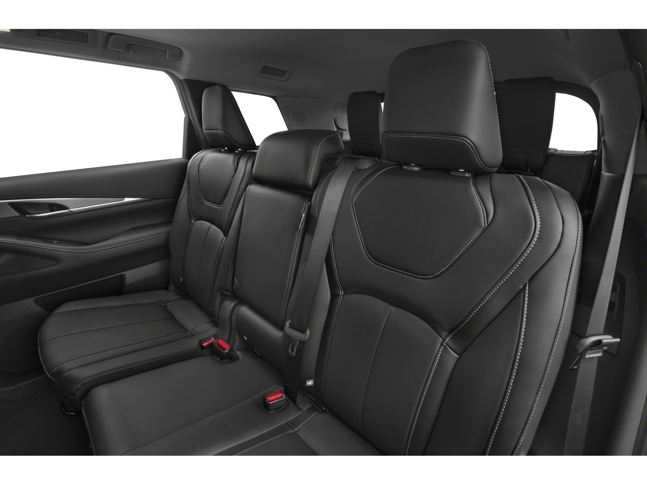 Majestic 2025 INFINITI QX60 LUXE AWD 9-Speed Automatic 2.0L I4 Turbocharged DOHC 16V LEV3-ULEV50 268hp 17 Speakers, 3rd row seats: bench, 4-Wheel Disc Brakes, ABS brakes, Air Conditioning, Alloy wheels, AM/FM radio: SiriusXM, Anti-whiplash front head restraints, Apple CarPlay/Android Auto, Auto High-beam Headlights, Auto tilt-away steering wheel, Auto-dimming door mirrors, Auto-dimming Rear-View mirror, Automatic temperature control, Black Edition, Black Edition (K12), Bose Performance Series 17-Speaker Sound System, Brake assist, Bumpers: body-color, Climate Controlled Front Bucket Seats, Delay-off headlights, Driver door bin, Driver vanity mirror, Dual front impact airbags, Dual front side impact airbags, Electronic Stability Control, Emergency communication system: INFINITI InTouch, Exterior Parking Camera Rear, Floor Mats w/Bench Seats on 3rd Row Tray, Four wheel independent suspension, Front anti-roll bar, Front Bucket Seats, Front Center Armrest, Front dual zone A/C, Front reading lights, Fully automatic headlights, Garage door transmitter: HomeLink, Gloss Black Finish BI & Emblems, Gloss Black Finish Grille Surround, Gloss Black Finish Rear Badge, Gloss Black Finish Roof Rails, Heated door mirrors, Heated front seats, Heated rear seats, Heated steering wheel, Illuminated entry, Illuminated Front & Rear Kick Plates, Knee airbag, Leather Shift Knob, Leather steering wheel, Leather-Appointed Seating Surfaces, Literature Kit, Low tire pressure warning, Memory seat, Navigation system: INFINITI InTouch Navigation, Occupant sensing airbag, Outside temperature display, Overhead airbag, Overhead console, Panic alarm, Passenger door bin, Passenger vanity mirror, Power door mirrors, Power driver seat, Power Liftgate, Power moonroof, Power passenger seat, Power steering, Power windows, Premium Paint, Radiant Grille BI in Bright Chrome Finish, Radio data system, Radio: Bose Performance Series, Rain sensing wipers, Rear air conditioning, Rear anti-roll bar, Rear reading lights, Rear seat center armrest, Rear side impact airbag, Rear window defroster, Rear window wiper, Reclining 3rd row seat, Remote keyless entry, Security system, Speed control, Speed-sensing steering, Speed-Sensitive Wipers, Splash Guards, Split folding rear seat, Spoiler, Steering wheel memory, Steering wheel mounted audio controls, Tachometer, Telescoping steering wheel, Tilt steering wheel, Traction control, Trip computer, Turn signal indicator mirrors, Variably intermittent wipers, Ventilated front seats, Welcome Lighting, Wheels: 20 x 8J Sporty Mach Aluminum Alloy, Wheels: 20 x 8J Sporty Machined Aluminum Alloy.