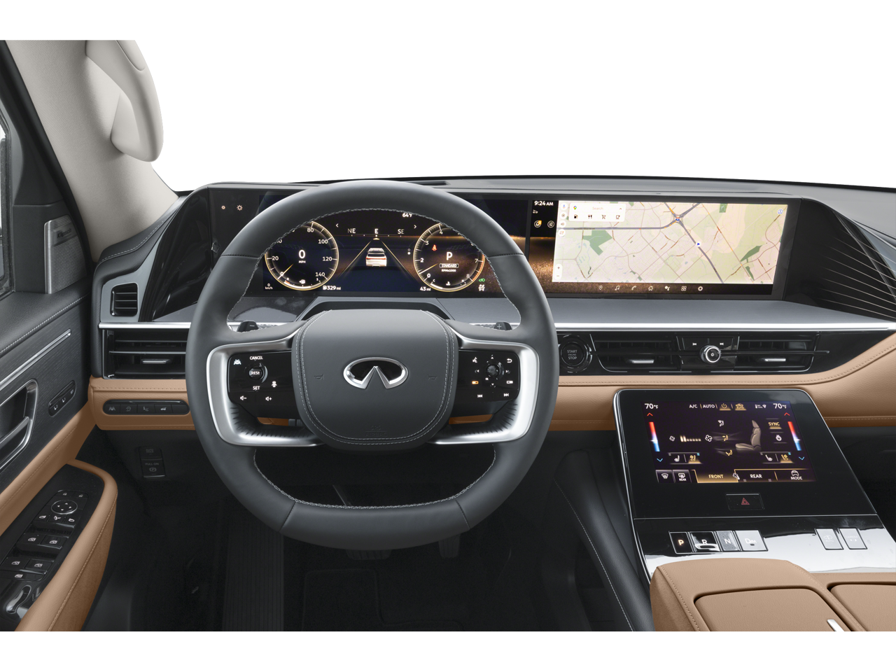 - Radio: Klipsch Reference Premiere Audio System -inc: 24-speakers, 3D audio, Active Sound Enhancement (ASE), demo mode, individual audio headrest speakers for driver and front passenger, INFINITI InTouch services, 4G Wi-Fi hotspot, dual 14.3" infotainment screens w/9" front control panel, Google built-in w/navigation, Amazon Alexa built-in w/hotword, Bluetooth® hands free phone and audio streaming, wireless Apple CarPlay and Android Auto, hybrid radio, SiriusXM w/360L (3-month trial included) and 2 USB type-C ports