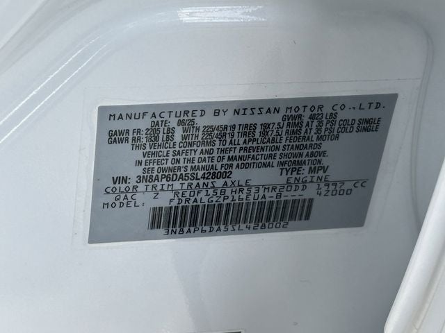 Aspen White 2025 Nissan Kicks SR FWD CVT with Xtronic 2.0L DOHC **ONE OWNER**, **CARFAX CERTIFIED, ***NISSAN CERTIFIED PREOWNED (CPO), Kicks SR, Nissan Certified Certified, 4D Sport Utility, 2.0L DOHC, CVT with Xtronic, FWD, Aspen White, Sport, Alloy wheels, Auto High-beam Headlights, Delay-off headlights, Front Bucket Seats, Fully automatic headlights, Power door mirrors, Remote keyless entry, Security system, Split folding rear seat, Spoiler, Sport Cloth/Leatherette Seat Trim, Turn signal indicator mirrors, Wireless Apple CarPlay/Wireless Android Auto, 4-Wheel Disc Brakes, 6 Speakers, ABS brakes, Air Conditioning, AM/FM radio: Sirius, Automatic temperature control, Brake assist, Bumpers: body-color, Carpeted Floor Mats & Underfloor Protector, Door Trim Panel Scuff Plates, Driver door bin, Driver vanity mirror, Dual front impact airbags, Dual front side impact airbags, Electronic Stability Control, Front anti-roll bar, Front Center Armrest, Front reading lights, Front wheel independent suspension, Illuminated entry, Knee airbag, Leather Shift Knob, Leather steering wheel, Low tire pressure warning, Occupant sensing airbag, Outside temperature display, Overhead airbag, Overhead console, Panic alarm, Passenger door bin, Passenger vanity mirror, Power steering, Power windows, Premium Paint, Radio data system, Radio: AM/FM Audio System, Rear anti-roll bar, Rear reading lights, Rear seat center armrest, Rear side impact airbag, Rear window defroster, Rear window wiper, Speed control, Speed-sensing steering, Splash Guards, Sport steering wheel, Steering wheel mounted audio controls, Tachometer, Telescoping steering wheel, Tilt steering wheel, Traction control, Trip computer, Variably intermittent wipers, Kicks SR, 4D Sport Utility, 2.0L DOHC, CVT with Xtronic, FWD, Aspen White, Sport, Alloy wheels, Auto High-beam Headlights, Delay-off headlights, Front Bucket Seats, Fully automatic headlights, Power door mirrors, Remote keyless entry, Security system, Split folding rear seat, Spoiler, Sport Cloth/Leatherette Seat Trim, Turn signal indicator mirrors, Wireless Apple CarPlay/Wireless Android Auto.